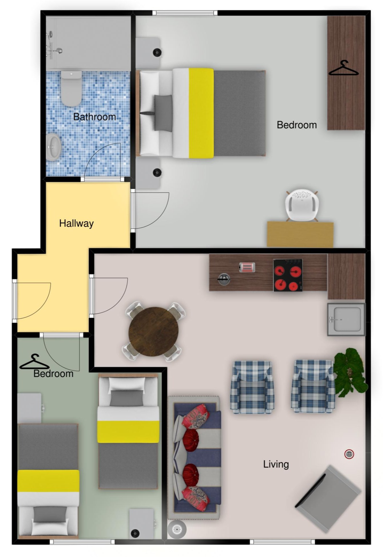 Royal 2 is a 2 bedroom apartment boasting a beautiful sea view, located in our cliff top Royal building. It sleeps up to 4 people in its 2 bedrooms, bedroom 1 is a double and bedroom 2 is a twin. As well as having a large open plan living and dining area.