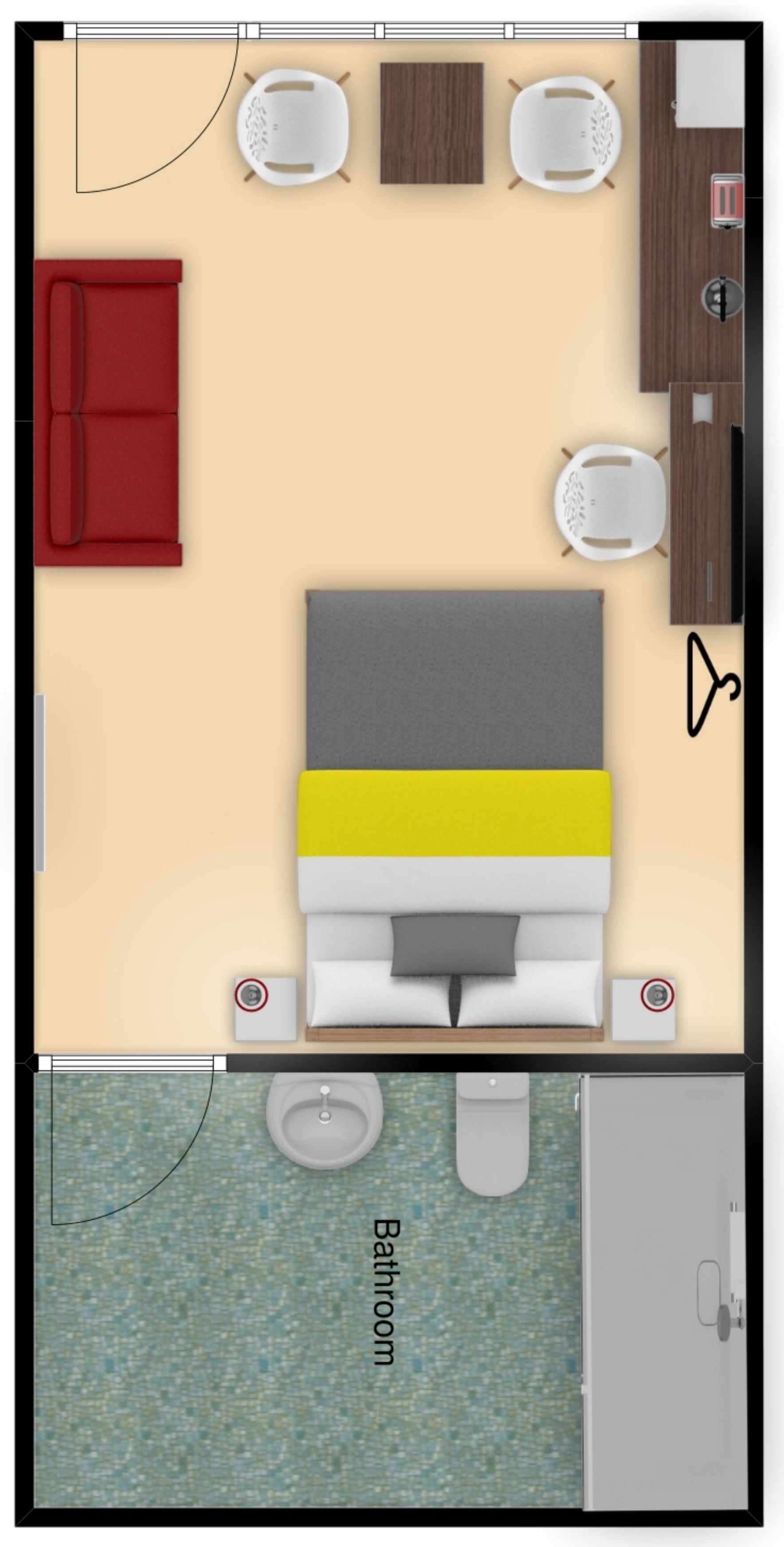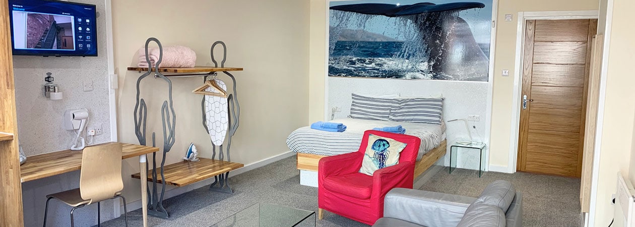 Silver Street Suites 4 is a cosy and contemporary mini suite room. These rooms are a studio style apartments with small kitchenette, dining and seating areas. Situated centrally in our Silver Street Suites building.