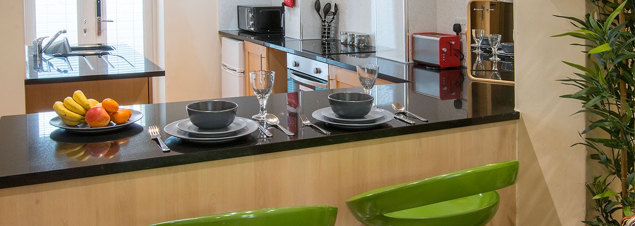 Town House 1 is a stylish one bedroomed apartment on a lower floor, comes with a living area and kitchen - all open plan.